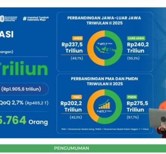 Kementerian Investasi dan Hilirisasi/BKPM mencatatkan realisasi investasi pada triwulan II Tahun 2025 mencapai angka Rp477,7 Triliun. Angka tersebut merupakan 25,5% dari total target investasi sebesar Rp1.905,6 Triliun pada tahun ini. Jika mengacu data laporan, realisasi investasi di Pulau Jawa dengan Luar Jawa bisa dibilang hampir relative seimbang/sama yakni sebesar Rp237,5 Triliun atau 49.7% di Pulau […]